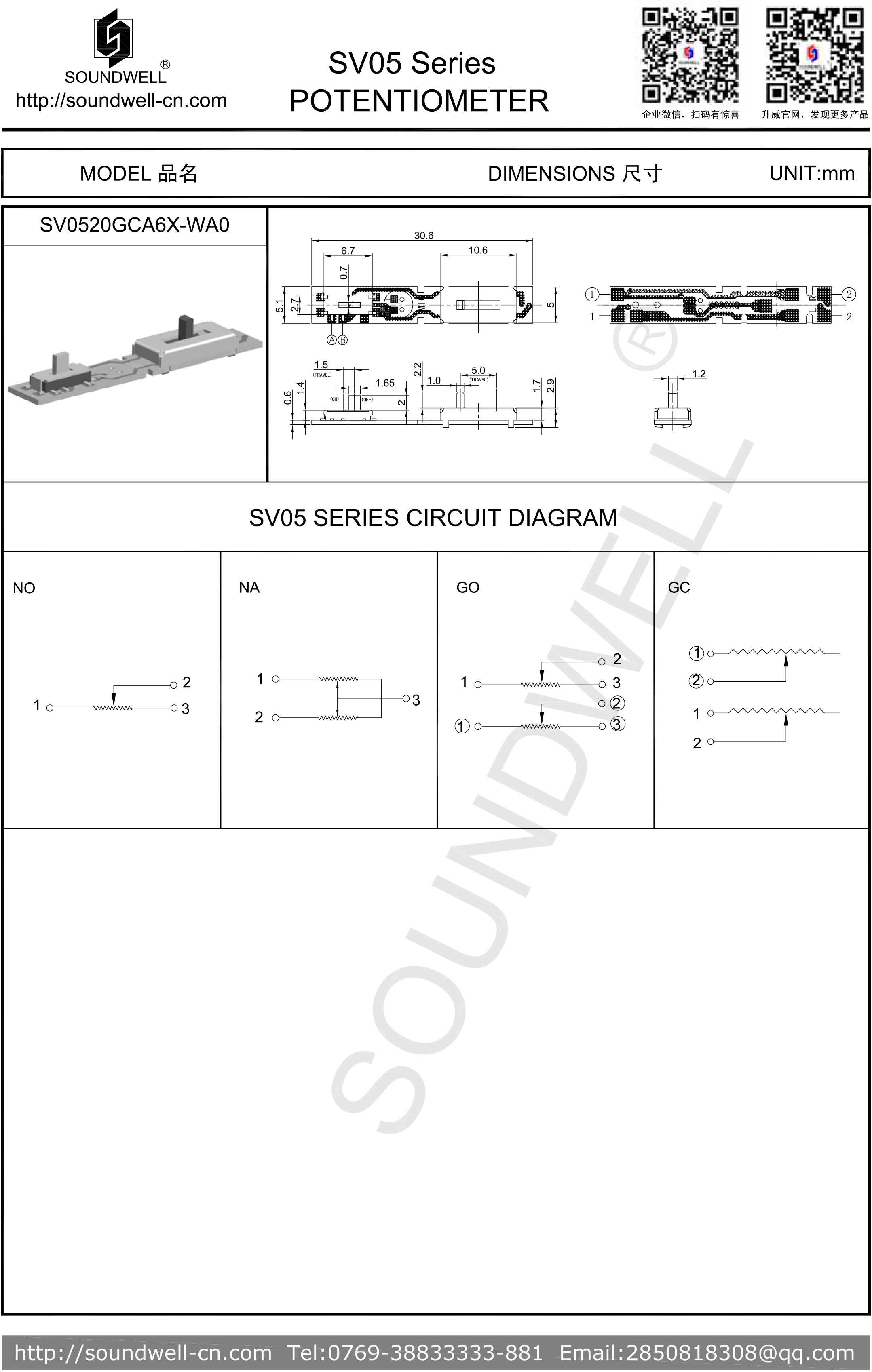 SV05直滑式電位器產品規格參數