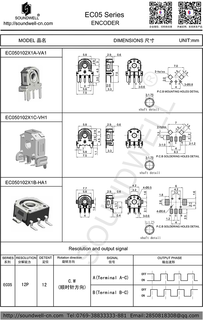 如下是EC05旋轉編碼器規格書,需進一步了解詳細規格書,請聯系右側客服