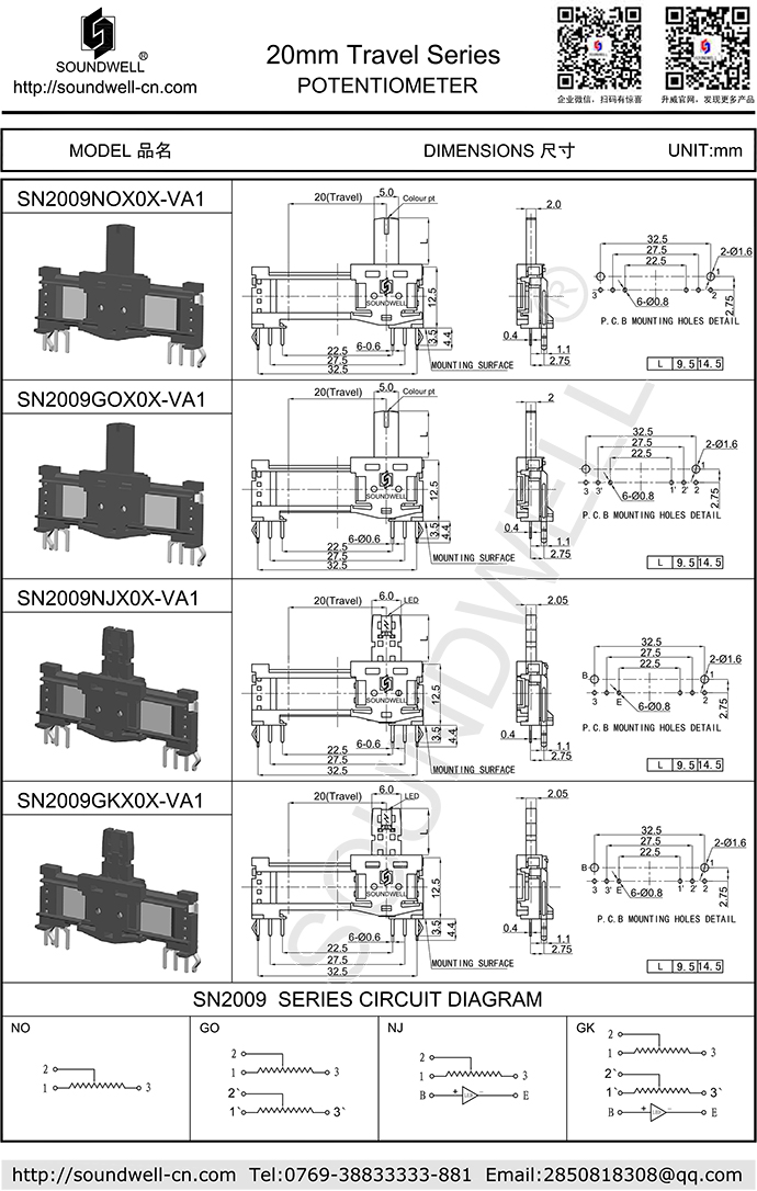 | Name: | 20mm Travel Slide potentiometer |