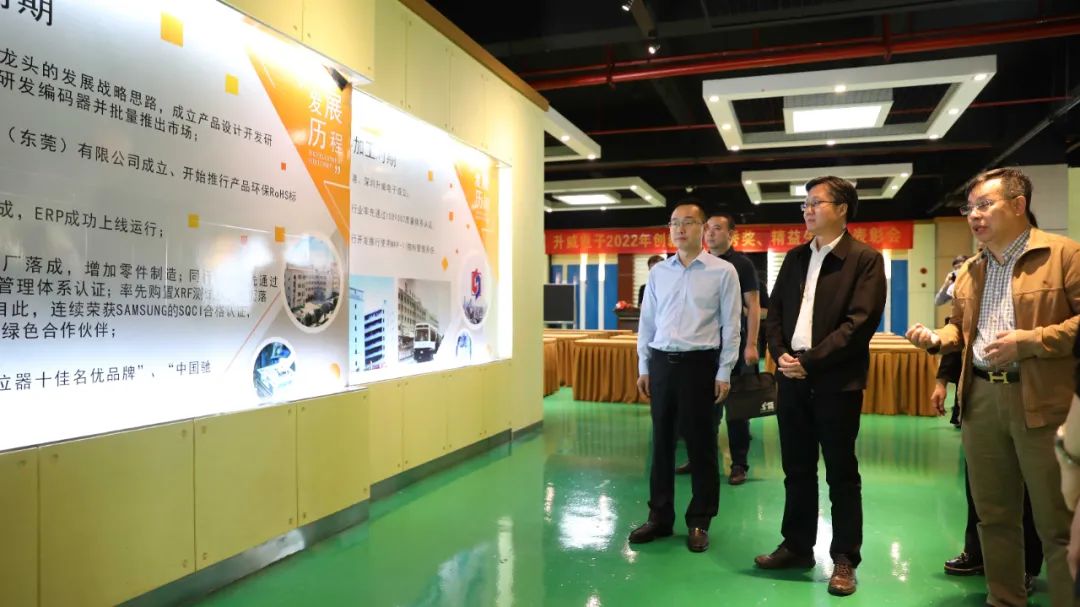 洪金鑣董事長對邢文聚副市長率領的工作組蒞臨升威電子表示熱烈歡迎。在洪金鑣董事長、洪淑倫總經理的陪同下,來賓參觀了總部展廳、技術中心、辦公場所等區域,對升威電子自主研發產品、業務發展、戰略規劃等方面進行了考察與了解,洪董親自進行參觀講解。