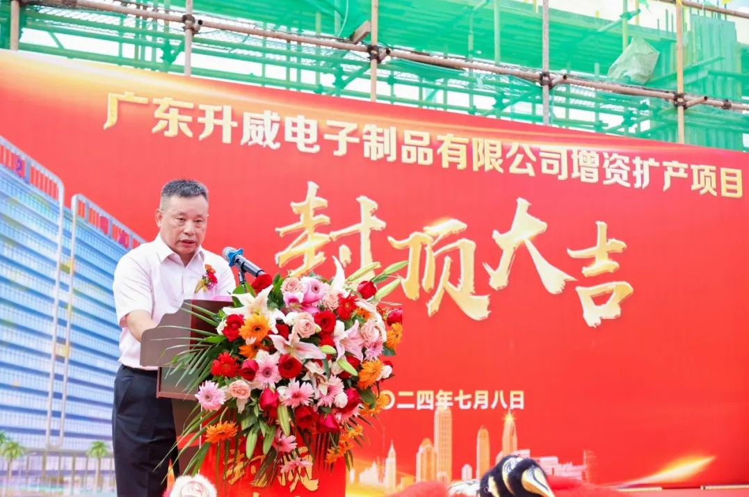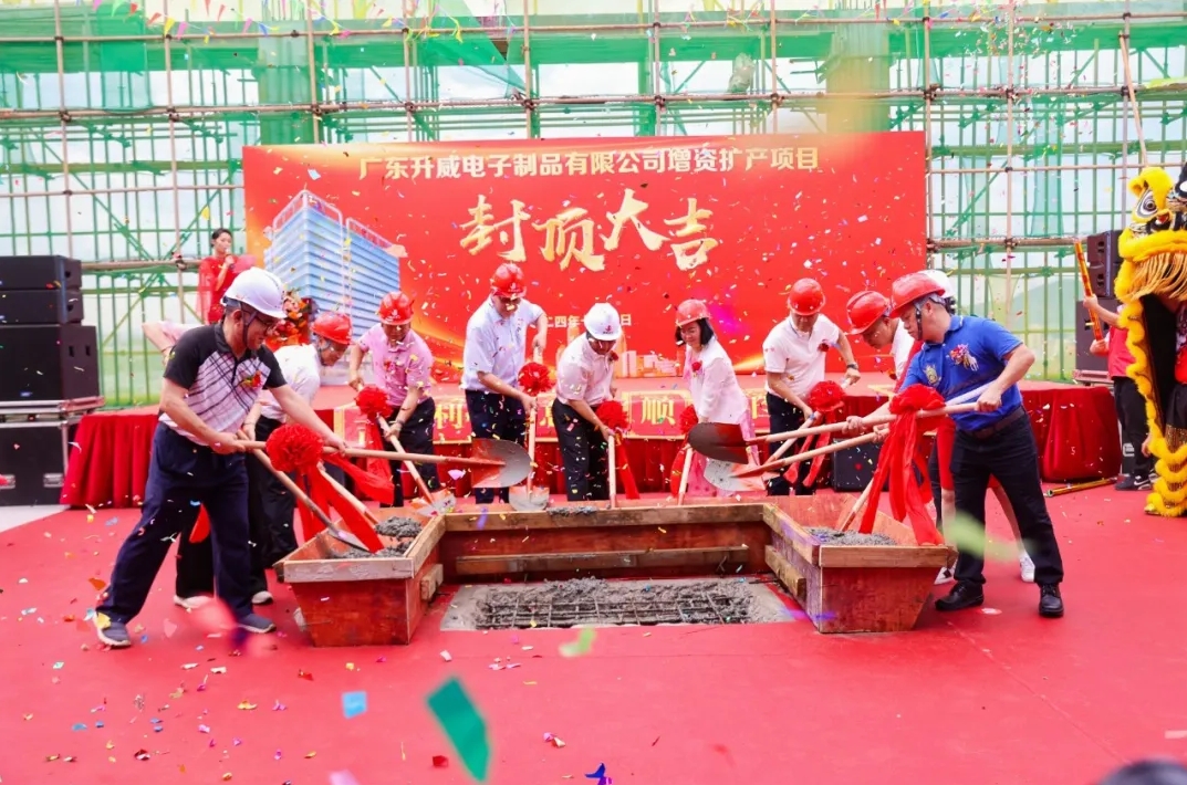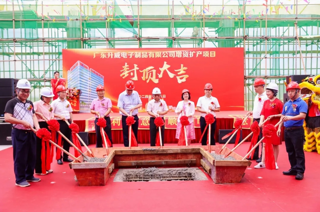 喜封金頂,開啟新篇。2024年7月8日,廣東升威電子制品有限公司(下稱“升威電子”)新建升威科技大廈正式封頂。項目打造為以專業設計制造集成模組、傳感器、編碼器、電位器、開關等多元化產品為主的數字化工廠及新總部,將為企業發展注入新的活力。