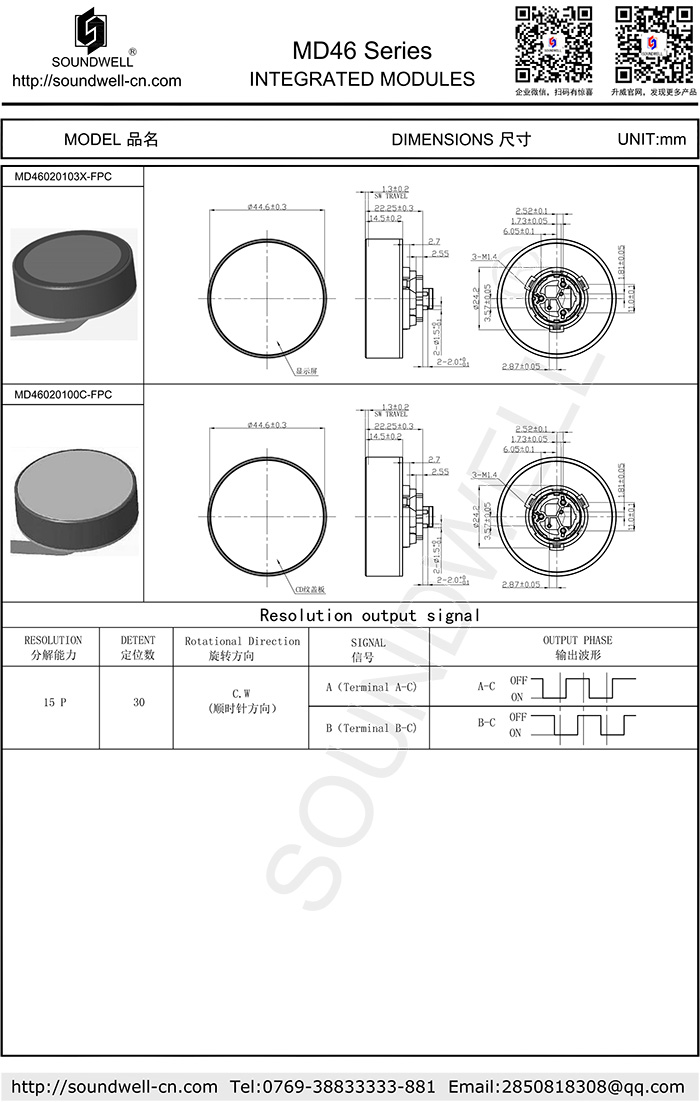 | 主要規格: | 外形尺寸:46 mm 編碼器定位數:30個定位 編碼器輸出脈沖數:15 Pulses 工作溫度:-20℃~70℃ 旋轉壽命:30,000次以上 開關壽命:30,000次以上; |