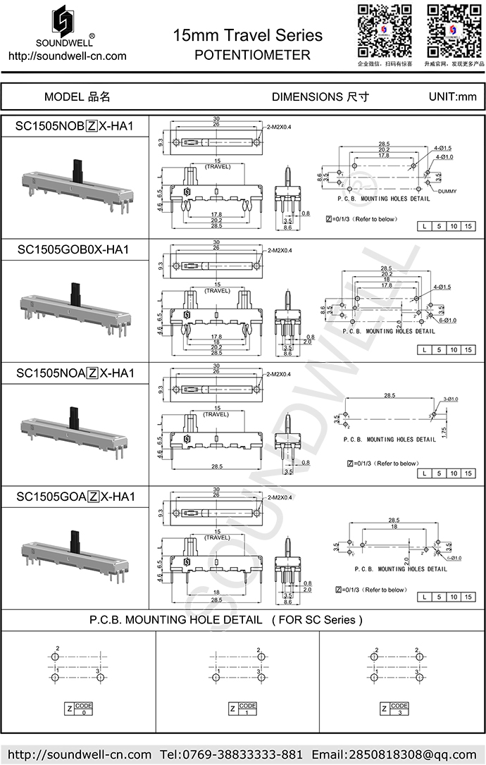 直滑電位器名稱: 15MM行程直滑電位器 單聯直滑電位器 雙聯直滑電位器
